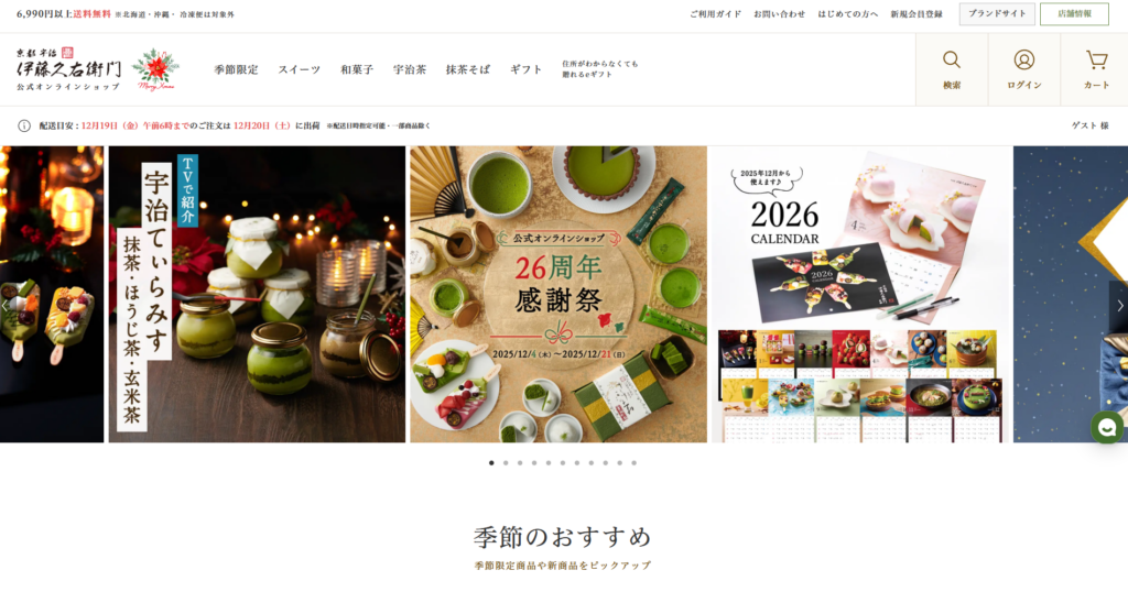 【PR】伊藤久右衛門 挽きたて宇治抹茶を贅沢に使った京都宇治のお茶屋スイーツ天保3年創業の京都宇治のお茶屋のようです。挽きたて宇治抹茶を贅沢に使用し茶房で人気の味を全国へお届けされているとのこと。店頭と同価格で商品を提供されておりスイーツだけでも40〜50商品をラインナップされているようです。定番商品から季節限定商品まで約100商品が販売されているとのことです。 おすすめ抹茶スイーツセレクション 厳選された抹茶スイーツの中から特に人気の商品をご紹介します。 宇治抹茶だいふく 6個入 ¥1,111 挽きたて宇治抹茶を贅沢に使用し丹念に炊き上げた濃厚抹茶あんにクリームをブレンドされているようです。口の中にじゅわ〜っと広がる濃厚抹茶味が魅力のようです。 宇治抹茶あんみつ 4個入 ¥3,999 挽きたての宇治抹茶を使用した濃厚抹茶ゼリーは鮮やかな緑色の中に宇治抹茶が爽やかに香るようです。別添の濃厚な抹茶みつをお好みの量で楽しめるようです。 宇治抹茶生チョコレート 16粒入 ¥1,393 ひと粒で抹茶の風味をぞんぶんに味わえるお茶屋の濃厚生チョコレートのようです。最初に挽きたて抹茶の鮮やかな緑とほろ苦さが感じられ次に口の中でとろける生チョコの控えめな甘さが広がるようです。 宇治抹茶そばギフト「松」 ¥4,149 茶房で人気の抹茶そばをご自宅でも楽しめるようです。宇治抹茶の上品な味わいと色鮮やかな麺は贈りものにも適しているようです。 抹茶パフェアイスバー 5本入 ¥3,990 茶房で人気の抹茶パフェがアイスバーになった商品のようです。1種類ずつ楽しめる5本入りで抹茶パフェを筆頭に限定パフェの味も再現されているようです。 こんな方におすすめ 抹茶好きの方本格的な宇治抹茶のスイーツを楽しめるとのことです。和菓子・和スイーツ好きの方京都らしい上品な甘さの和菓子から洋風アレンジまで幅広く揃っているようです。ギフトをお探しの方個装パッケージや化粧箱入りで包装やのし対応も可能とのことです。京都のお土産を探している方京都宇治の老舗お茶屋の商品で喜ばれるようです。自宅で本格抹茶スイーツを茶房で人気のメニューを自宅で堪能できるとのことです。季節の限定商品を楽しみたい方季節限定の抹茶スイーツも随時販売されているようです。 天保3年創業 京都宇治のお茶屋が作る 本格抹茶スイーツ 天保3年創業という190年以上の歴史を持つ京都宇治のお茶屋が運営されているようです。高級茶で名高い京都宇治に店舗を構えお茶屋ならではの本格的な抹茶の味わいを追求されているとのこと。宇治本店には茶房も併設されており地元のお客様からも評判のようです。週末には遠方から訪れるお客様も多く満席でお待ちいただくこともあるほどの人気とのことです。その茶房で人気のメニューを全国のお客様にも楽しんでいただけるよう通販で提供されているようです。抹茶の色・味・香りを最大限に引き出すため職人が丁寧に作り上げられているとのことです。 茶房で人気の味を 全国へ届ける 豊富なラインナップ スイーツだけでも40〜50商品宇治茶を含めると約100商品という豊富さのようです。挽きたて宇治抹茶を贅沢に使用した洋菓子から上品で風味豊かな和菓子まで幅広く展開されているとのことです。定番商品はもちろん季節限定商品も随時販売されているようです。店頭と同価格で商品を提供されているためお店で購入するのと同じ価格で楽しめるとのこと。石臼挽き宇治抹茶の豊かな香りと深い味わいを自宅でゆっくり堪能できるようです。抹茶の風味を最大限に活かすため熱の加減や混ぜるタイミングにまでこだわって作られているとのことです。 まとめ 天保3年創業京都宇治のお茶屋が本格的な抹茶スイーツを全国へお届けされているようです。挽きたて宇治抹茶を贅沢に使用し茶房で人気の味を自宅で楽しめるとのことです。和菓子から洋菓子まで約100商品という豊富なラインナップが揃っているようです。店頭と同価格で提供されておりギフト包装にも対応されているため様々なシーンで活用できるとのことです。抹茶好きの方はもちろん京都らしいお土産や贈り物をお探しの方にもおすすめのようです。 伊藤久右衛門の詳細は公式サイトでご確認ください 商材名 伊藤久右衛門運営者 M.I※当サイトはアフィリエイトプログラムを利用し宣伝目的で作成しております。